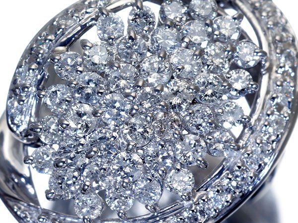 > 1円~【ジュエリー極】超豪華フラワーデザイン輝く!良質天然ダイヤモンド1.50ct 超高級Pt900リング k1034zulm【送料無料】