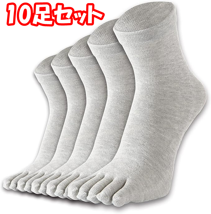 - 【10足セット】5本指ソックス メンズ ビジネスソックス 五本指靴下 抗菌防臭 25-28cm(色:グレー)PRG10