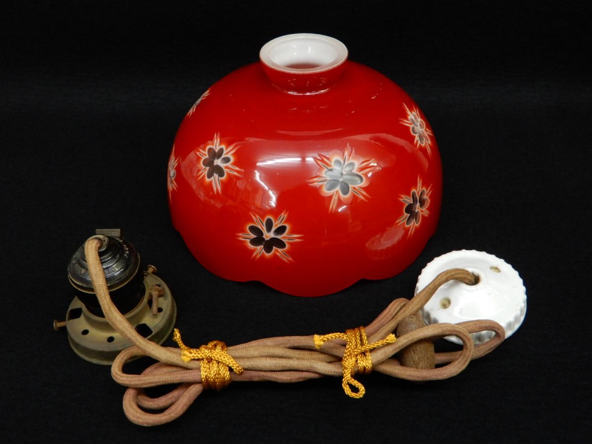 - ★古い電笠 赤色切子硝子★大正浪漫/ガラス/シェード/消費税0円