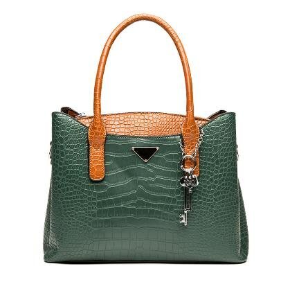 - 高品質 レザー調 クロコダイル柄 ハンドバッグ ショルダーバッグ グリーン レディース 女性 【n409】