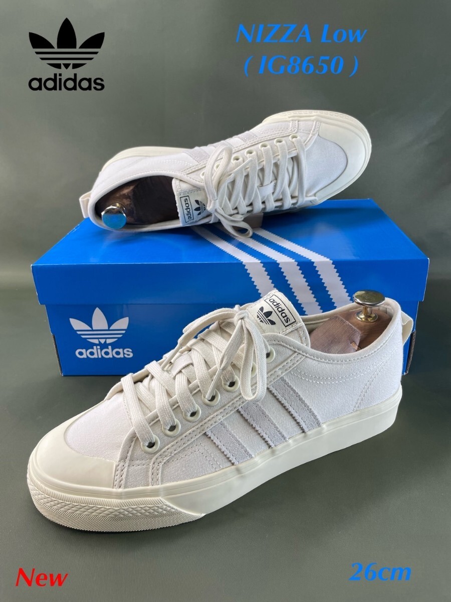 - 名機降臨!定8800円/未使用品!80'復刻生成ホワイト!生産終了サンドストライプ!アディダス【ニッツァLow】スニーカー!白×灰 26cm/US8