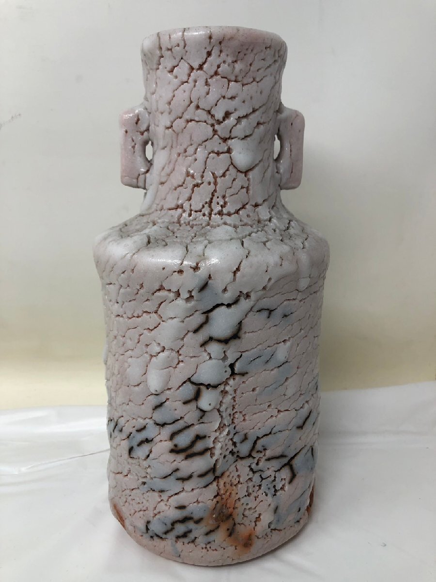 ◆詳細不明 志野焼 花瓶 華道具 花道具 花器 花入 飾壺 飾 陶器 作家物 高さ約23cm 中古◆16149★