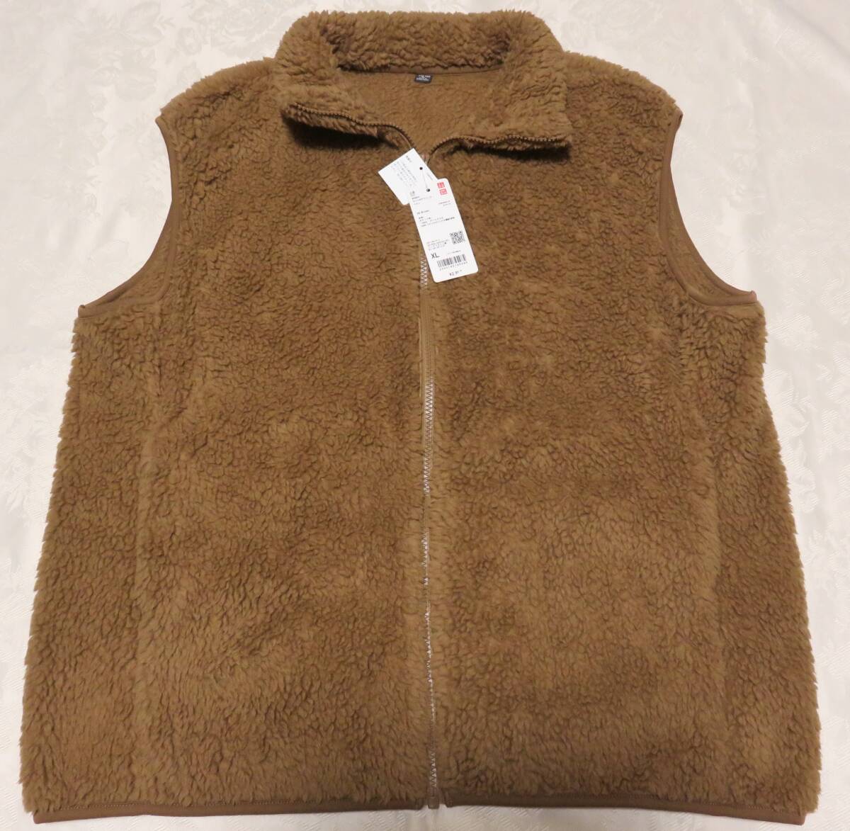 > 未使用タグ付 ユニクロ ライトボア フリース ベスト ブラウン茶 WOMEN XL/LL ジップアップ 防寒 アウター 上着 部屋着 ルームウェア UNIQLO