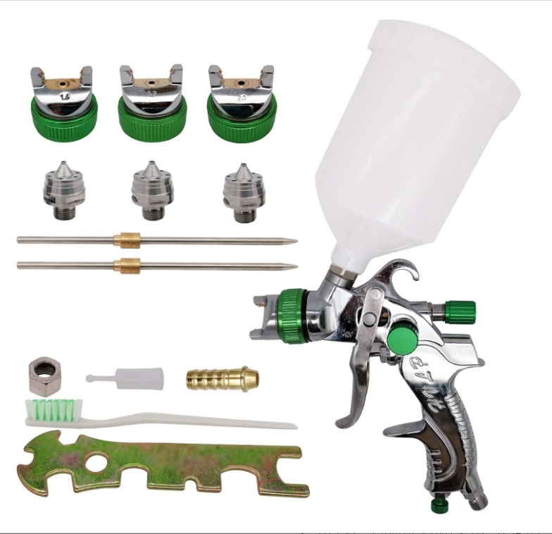 - スプレーガン 家庭用塗装ガン 供給エアスプレーガン3ノズル1.4 / 1.7 / 2mm付き 600ミリリット重力空気圧エアスプレーガン 掃除ブラシ付き