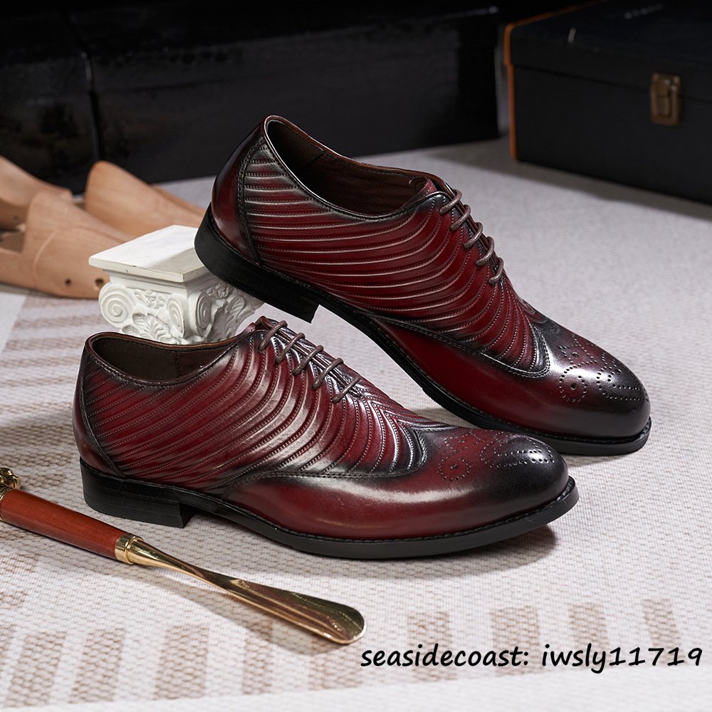 - 最高級★9万 ビジネスシューズ 新品 メンズ 本革 レザーシューズ 職人手作り 手塗仕上げ イタリア製 超希少 紳士靴 革靴 牛革 赤系 25.0cm