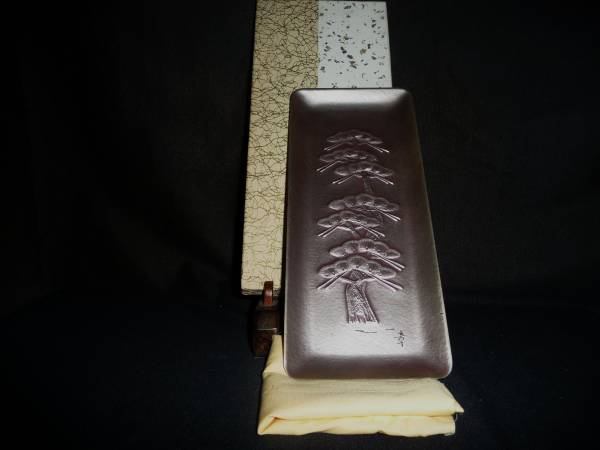 - ■工芸品*彫金■佐伯和章作『松図*ペン皿』感動・美品♪♪