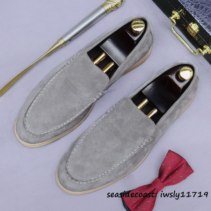 - 最高級★ビジネスシューズ 本革 メンズ ドライビングシューズ 職人手作り ローファー スリッポン スエード革 紳士靴 革靴 グレー 27.5cm