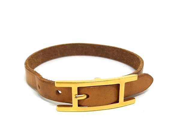 - 1円 HERMES エルメス アピ3 レザー ゴールド金具 ブレスレット チョーカー アクセサリー レディース メンズ ブラウン系 FS6984