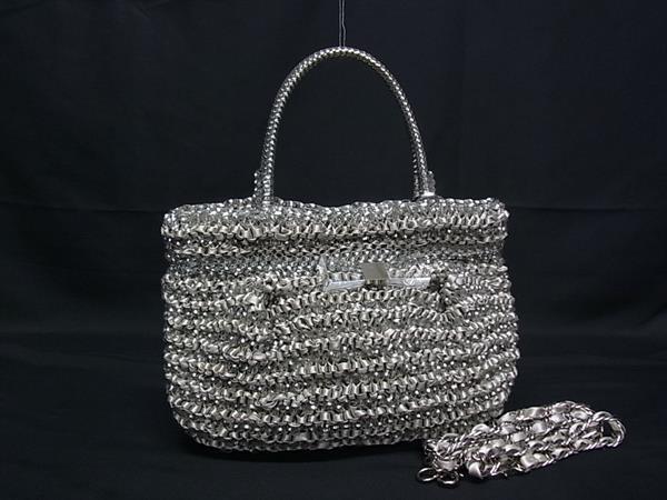- 1円 ANTEPRIMA アンテプリマ ワイヤーバッグ リボン×PVCワイヤー 3WAY ショルダー トート ハンドバッグ クロスボディ グレー系 FU5110