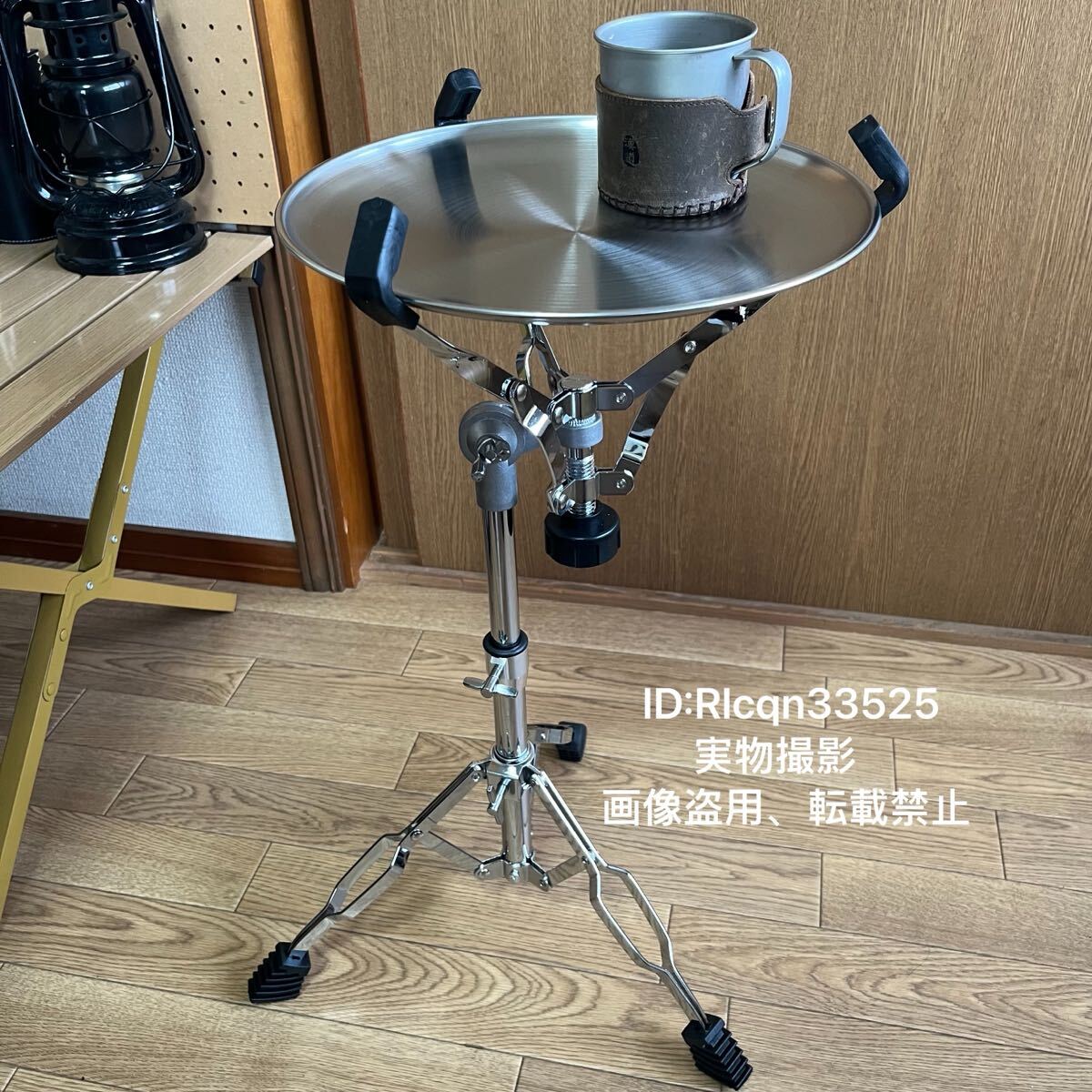 - 超激レア メタル風 キャンプ 超高品質 3足円形テーブル 組立式 ステンレス製 無段高さ調整 径30cm アウトドア