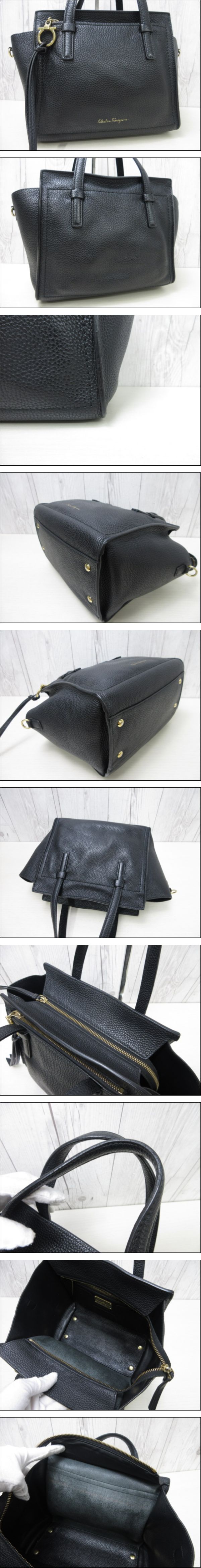- 美品 Ferragamo フェラガモ ガンチーニ ハンドバッグ バッグ レザー 黒 91746
