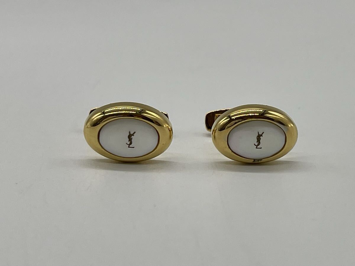 - 【1円スタート】Yves Saint Laurent イヴ・サンローラン カフス ゴールド×ホワイト YSLロゴ 一箇所傷あり