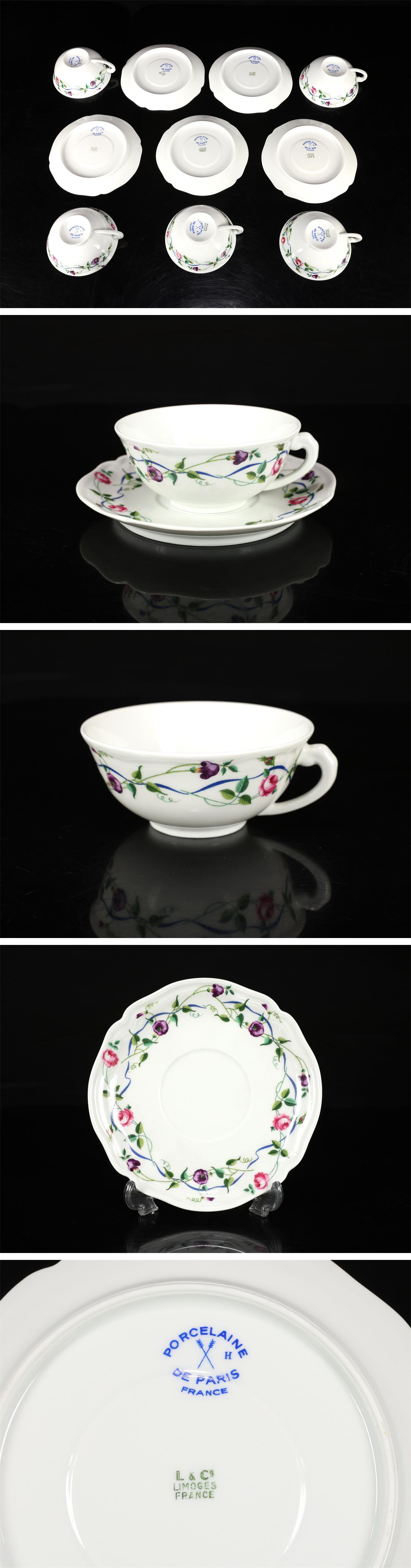 > 【吉】CN814 アビランド LIMOGES 【リモージュ】 PORCELAINE DE PARIS ポーセリン・ド・パリ カップ&ソーサー 5組 10点セット/美品!