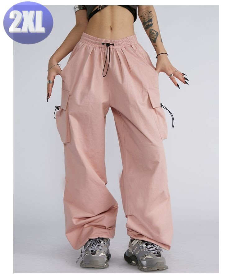 - カーゴパンツ ピンク レディース 2XL ワイド ストリート ダンス アウトドア ウエストゴム