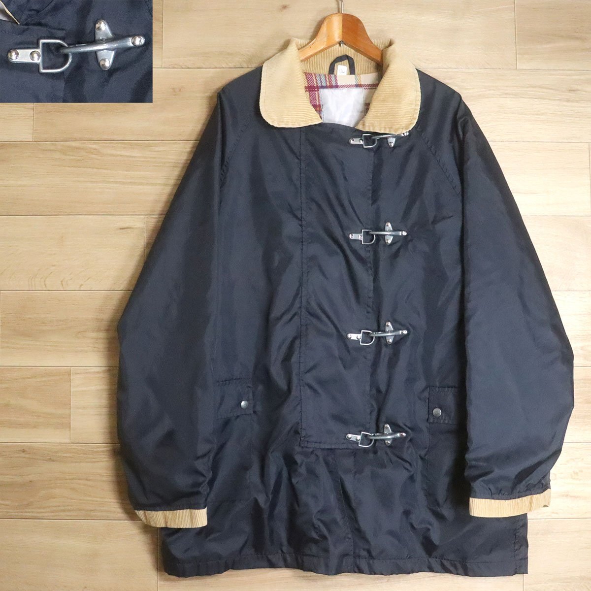 > E12O/R4.9-9 ファイヤーマンジャケット ファイヤーマンコート ナイロンジャケット 襟コーデュロイ 裏地チェック メンズ ユーロ古着