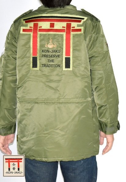 > 今昔ワッペンミリタリー防寒ジャケット◆今昔 カーキ Mサイズ KJ-19012 和柄 和風 アーミー 狐 きつね キツネ ユニセックス