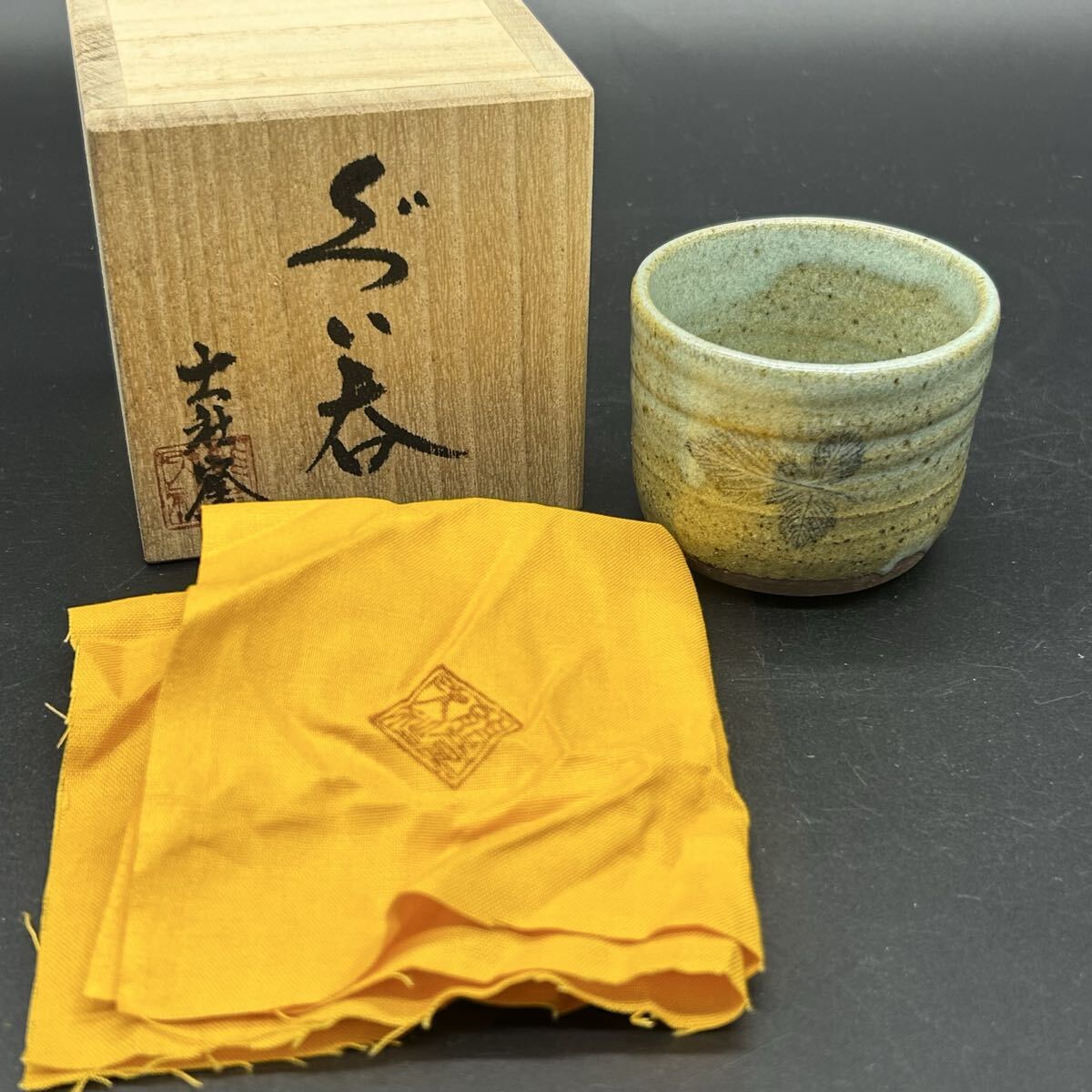 - 大社焼 ぐい呑み おちょこ 若葉文 陶器 酒器 フ9