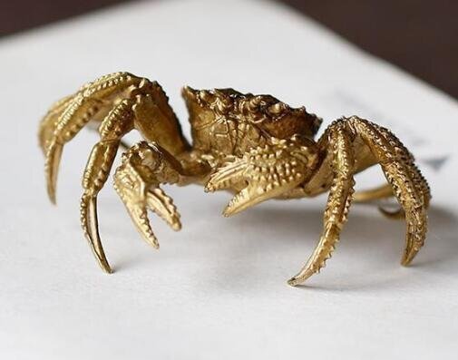 - 新品★実心 蟹 純銅 黄銅 彫刻 茶寵 置物