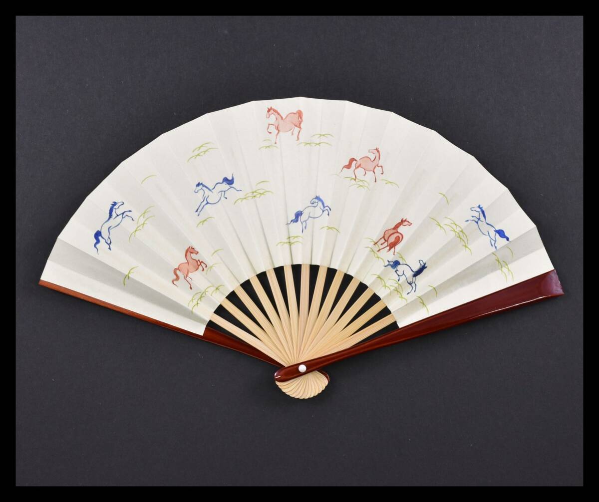 - ▲楠廸庵▲干支扇子(馬九行久) 5寸溜塗 茶道具