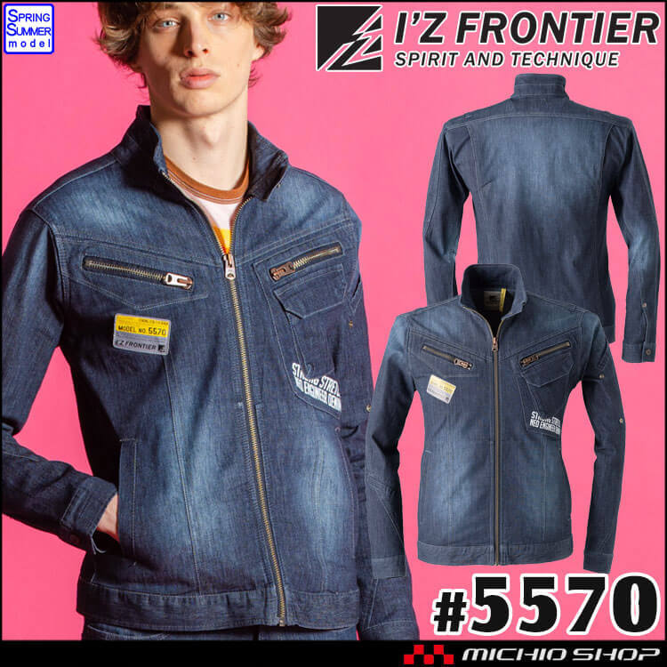 - [在庫処分]作業服 春夏 アイズフロンティア ストロングストレッチワークデニムジャケット 5570 Sサイズ 24ディープインディゴ