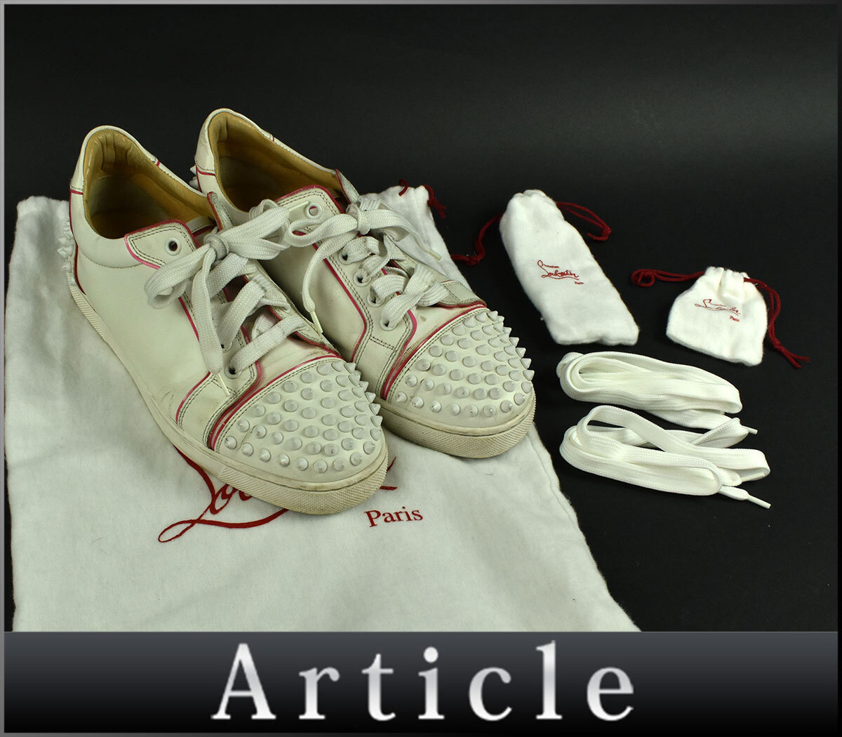 - 238698〇 Christian Louboutin クリスチャン ルブタン ローカット スニーカー 靴 37 1/2 レザー ホワイト ピンク レディース/ F
