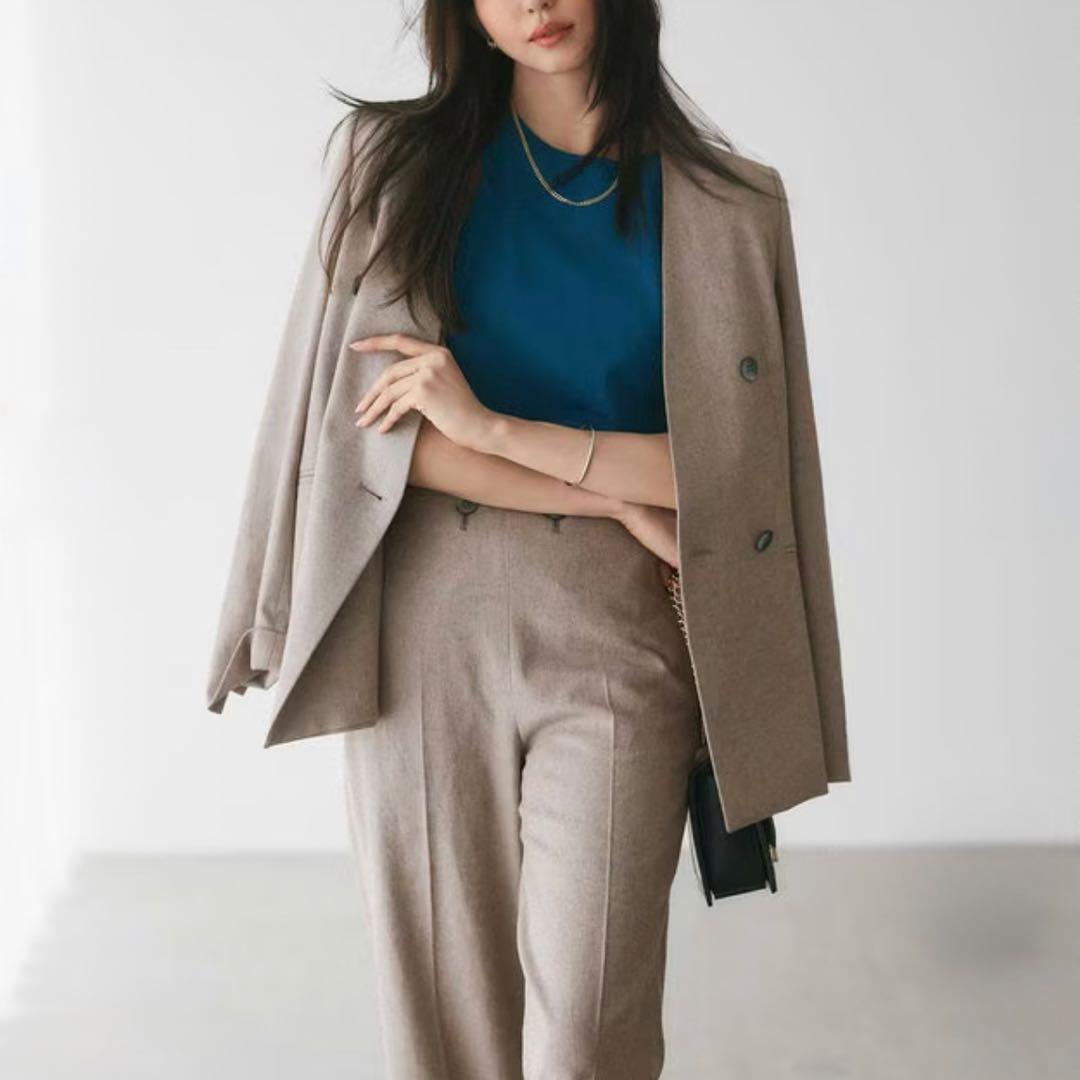 > Oggi掲載 24年モデル 23区 ニジュウサンク リネンミックスツイード セットアップスーツ ノーカラージャケット マリンパンツ 入学式 卒業式