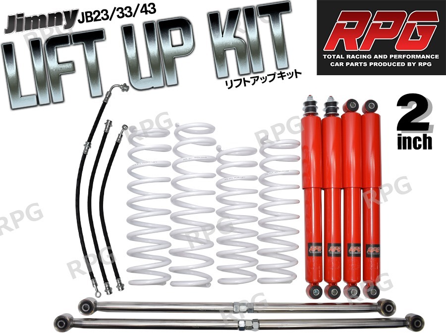 > ジムニー JB23/JB33/JB43 2インチ リフトアップキット RPGロングショック赤 ステンラテ コイル白 50mmロングブレーキホース付