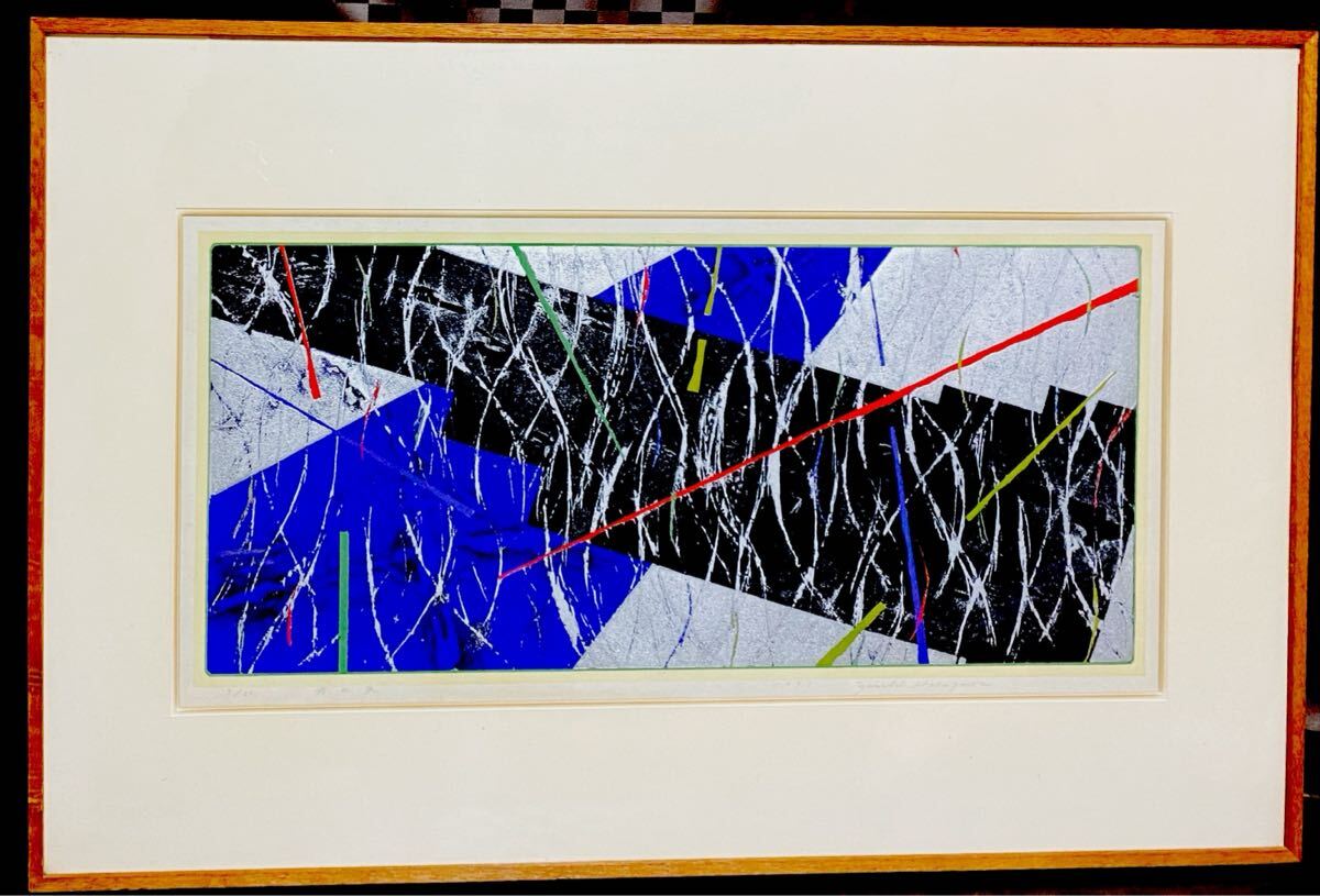 - 真作 木版画 長谷川雄一 【分水界】 限定20部 抽象画 額縁 額装 インテリア 直筆サイン