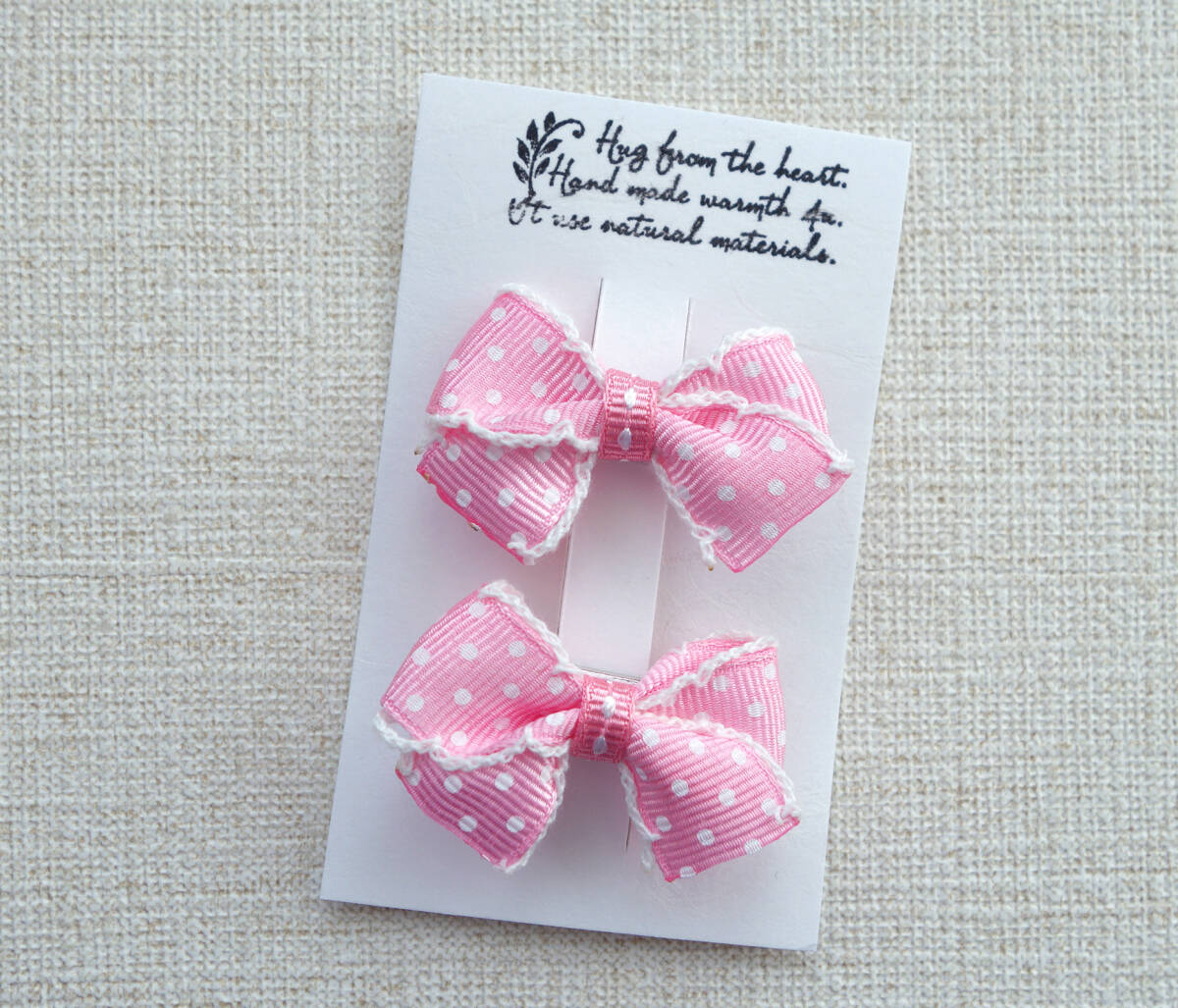 - ★ ハンドメイド ピンクのミニドット柄リボンヘアクリップ 2個セット ★