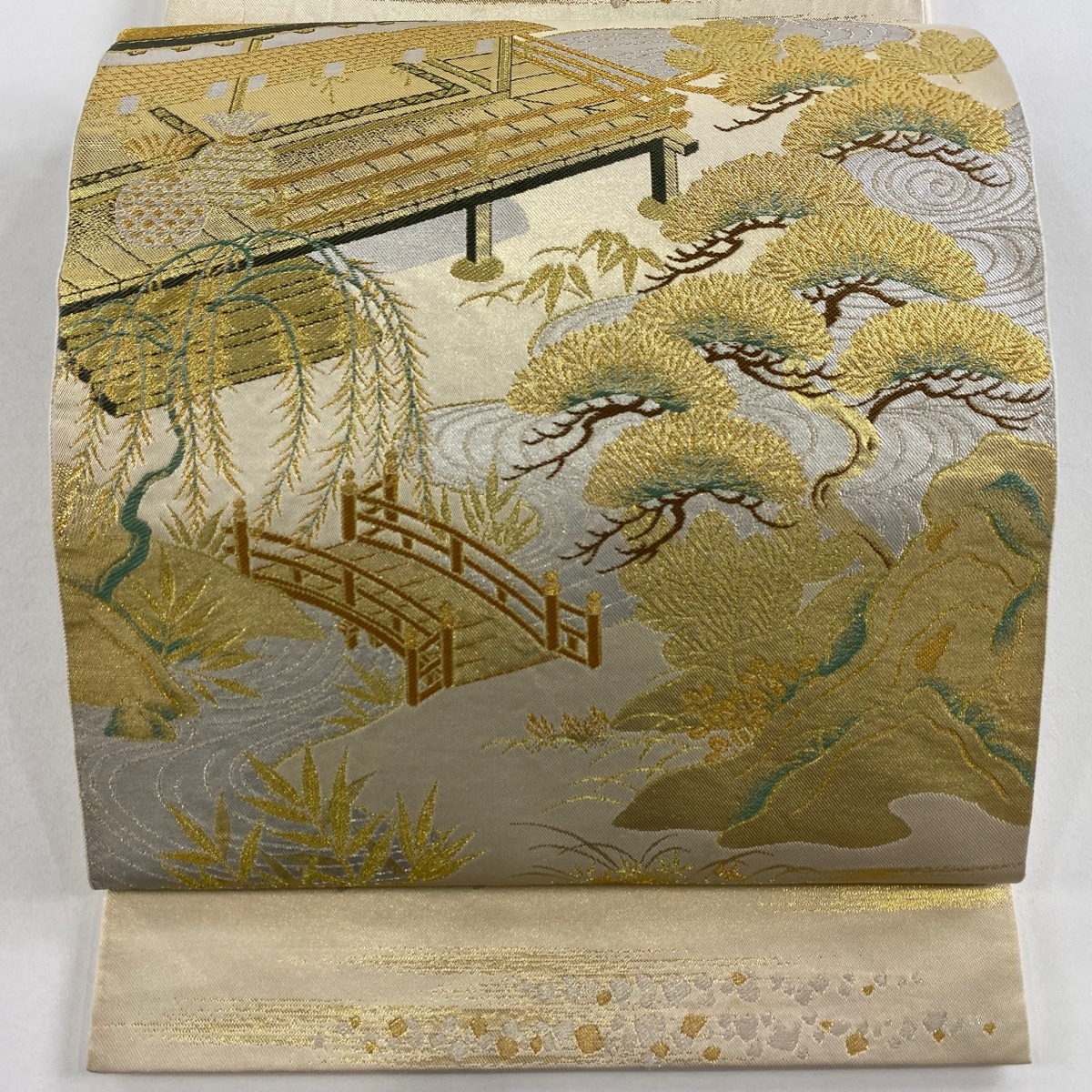 > 袋帯 秀品 川島織物 落款 風景 箔散らし 金銀糸 箔 金色 お太鼓柄 正絹 【中古】