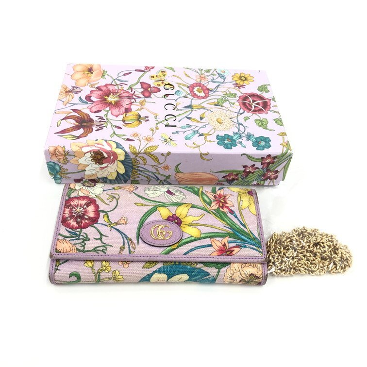- GUCCI グッチ GGフローラ 長財布 577343・0416 箱・チェーン付き【DKAH1005】