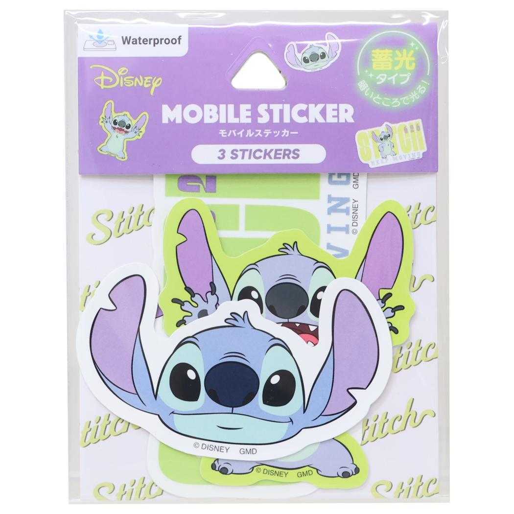 - リロ&スティッチ ダイカットシール 蓄光モバイルステッカー 3枚セット ディズニー グルマンディーズ デコレーション 光る キャラ