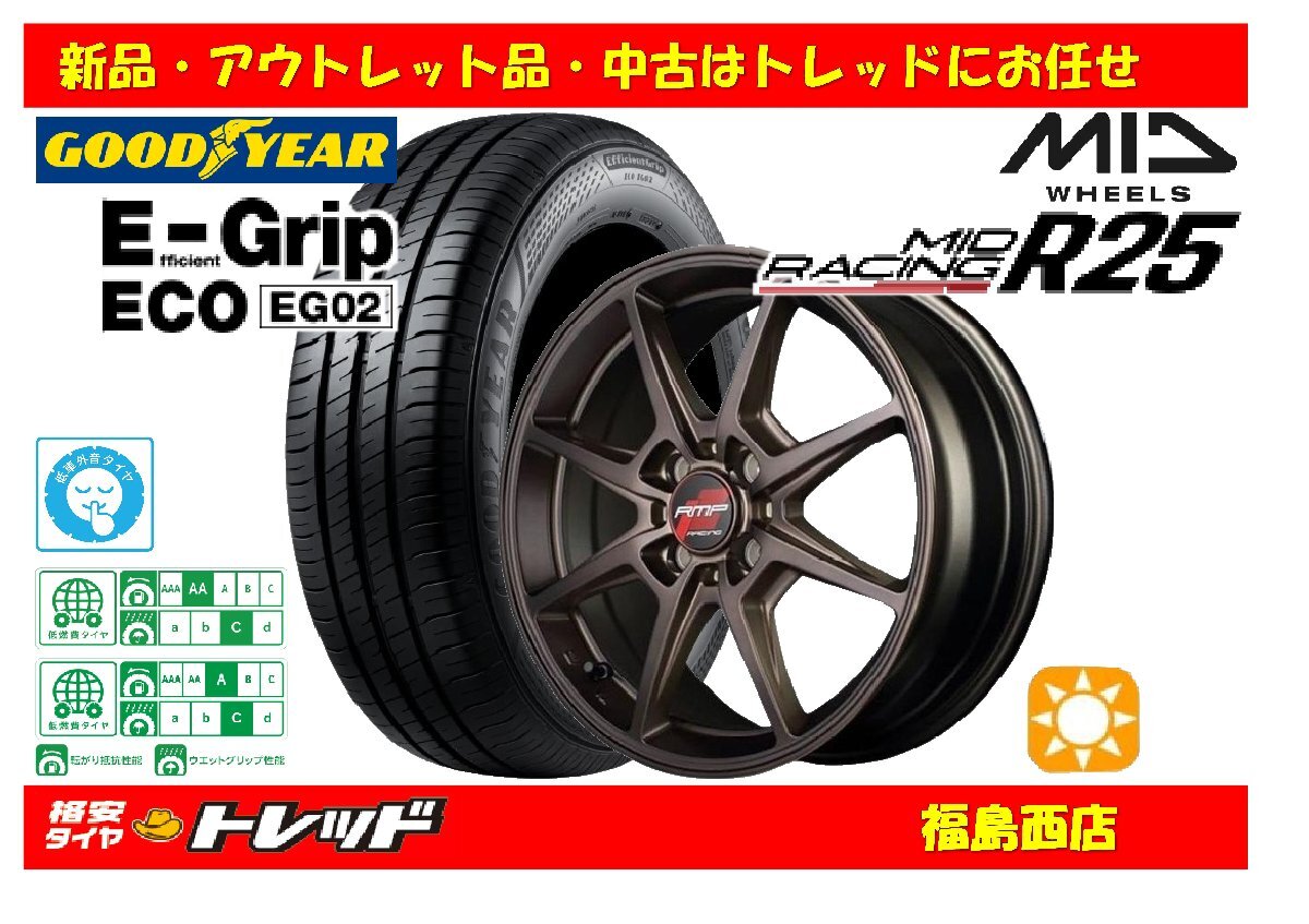 > 福島西 新品 サマータイヤホイール4本セット MID RMPレーシング R25 16インチ 6.0J 100/4H +43 & グッドイヤー EG02 185/55R16 83V