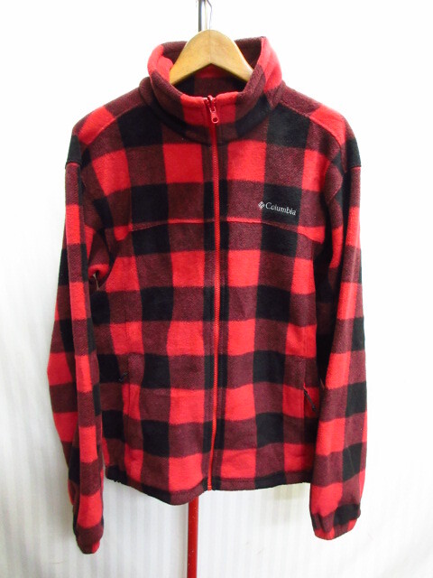 - コロンビア 赤ブロックチェック柄フリースジャケット メンズM 防寒保温ライナージャケット アウトドアインナー ブルゾン ジャンパー11074