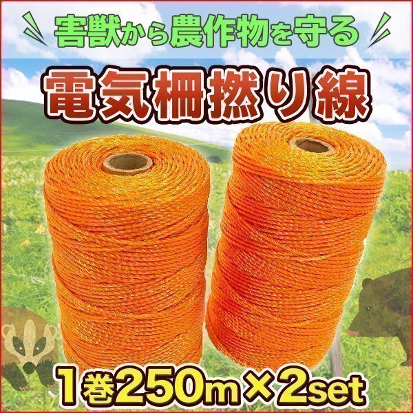 - ▼電気柵撚り線 1巻/2巻セット/250m 害獣対策 防除資材 電気牧柵 電柵 柵線 防獣