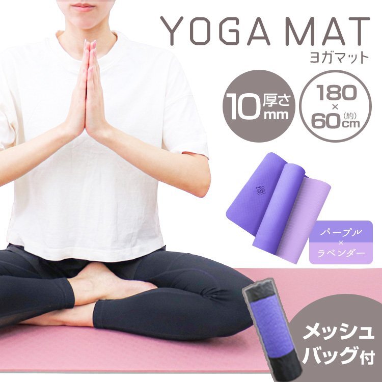 > 【パープル×ラベンダー】ヨガマット 厚手10mm 182×61cm 収納バッグ TPE素材 衝撃吸収 トレーニング ホットヨガ ピラティス ストレッチ