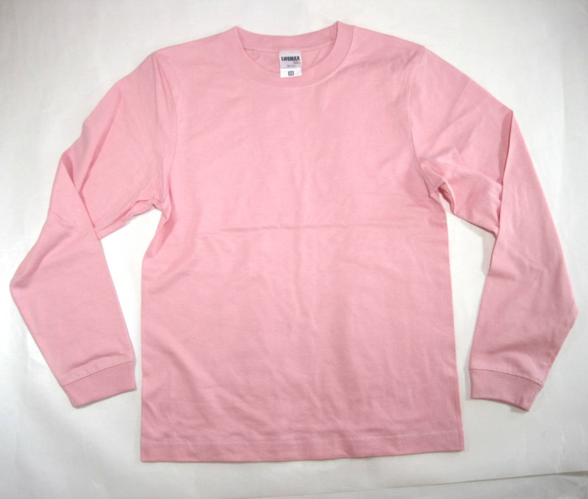 > 新品 LIFE MAX 6.2オンス ヘビーウェイト ロングスリーブTシャツ Sサイズ ピンク 丸首 長袖 パステルカラー シャツ
