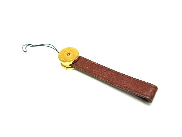 > ■美品■ BVLGARI ブルガリ ブルガリ レザー ストラップ キーホルダー チャーム メンズ レディース ブラウン系×ゴールド系 DI9983