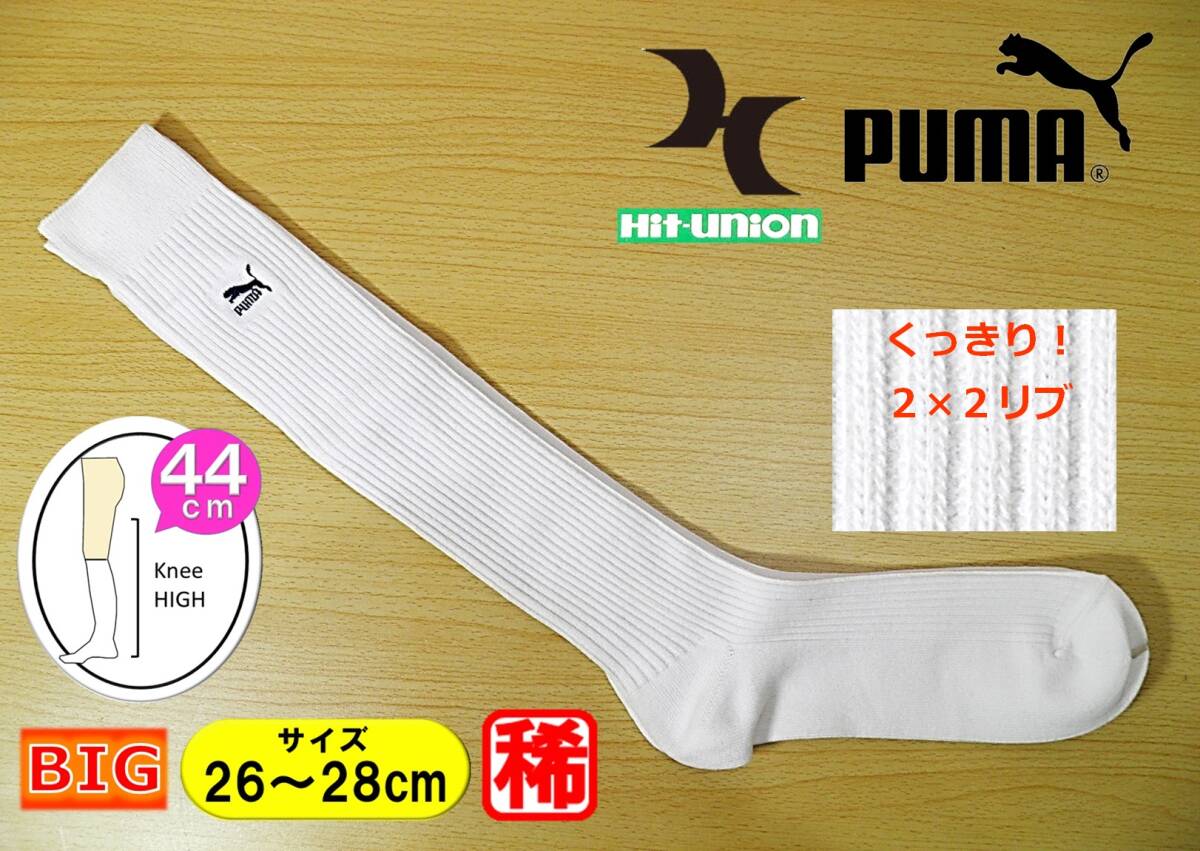- 【未使用★レッグウェア】日本製◆Hit Union◆PUMA◆大寸 くっきり 2×2リブ◆白リブ ハイソックス◆26-28cm◆44cm丈◆スポーツ◆稀少B◆