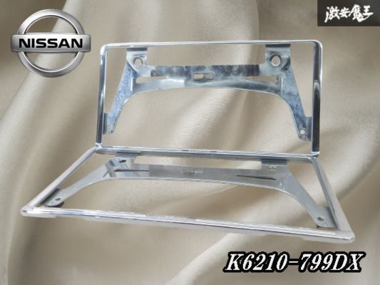 > NISSAN 日産 純正 ナンバープレート ナンバーフレーム 2枚 前後セット 穴間 約21cm 縦 約17cm×横 約33.5cm K6210-799DX 即納 棚9-4
