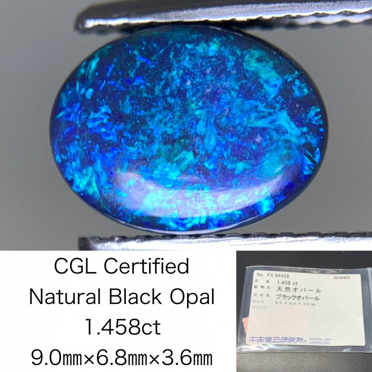 - ブラックオパール 天然 1.458ct 中央宝石ソーティング付き 9.0×6.8×3.6 ルース( 裸石 ) 7130Y