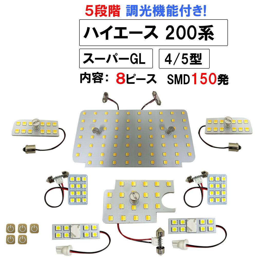 - 【互換品】ハイエース 200系 4型 5型 スーパーGL 5段階調光機能付き LEDルームランプ 8ピースSMD150発3色切替え