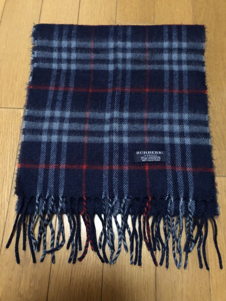 - ◆バーバリー ノバチェック マフラー◆ ウール ネイビーレッド◆BURBERRY