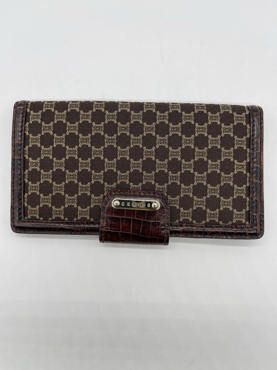 - CELINE セリーヌ マカダム柄 長財布 ブラウン レザー 美品 ロゴ金具付き 1円スタート