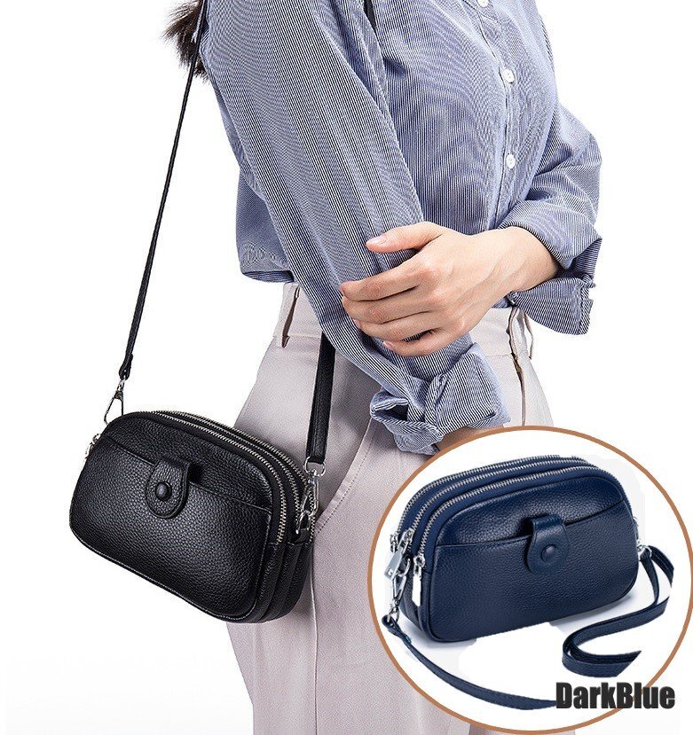 - ショルダーバッグ 牛皮 ダークブルー レザー シンプル 小物 スマホ カード 鍵 たばこ など n529