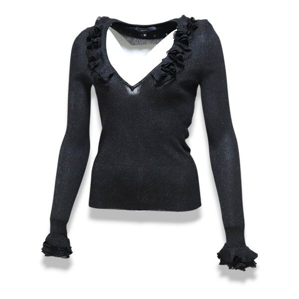 - 良品 ◆超レア◆ 国内正規品 Vintage GUCCI グッチ - Tom Ford - フリル ラメ リブ ニット トップス XS ブラック イタリア製