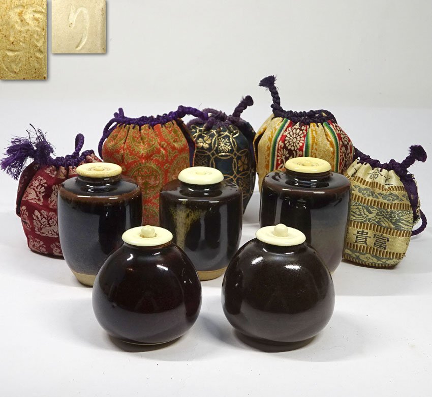 - 緑屋h■ 茶入 まとめて5点 仕覆付 在銘含む 茶道具 mae/10-293/18-2#80