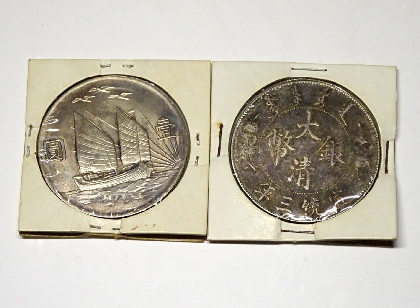 - 緑屋c■ 中国古玩 古銭 銀貨 2点 〔大清 銀幣 壹圓〕〔中華民国二十一年 孫文 壹圓〕 唐物 時代物 i9/10-6496/4-3#60
