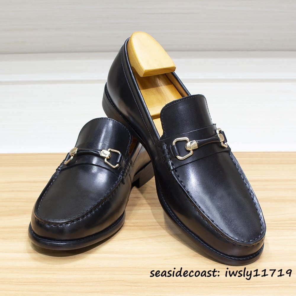 - 最高級★定価9万 本革 レザーシューズ 新品 ビジネスシューズ メンズ 職人手塗仕上げ 超希少 ローファー 紳士靴 牛革 革靴 ブラック 24.5cm