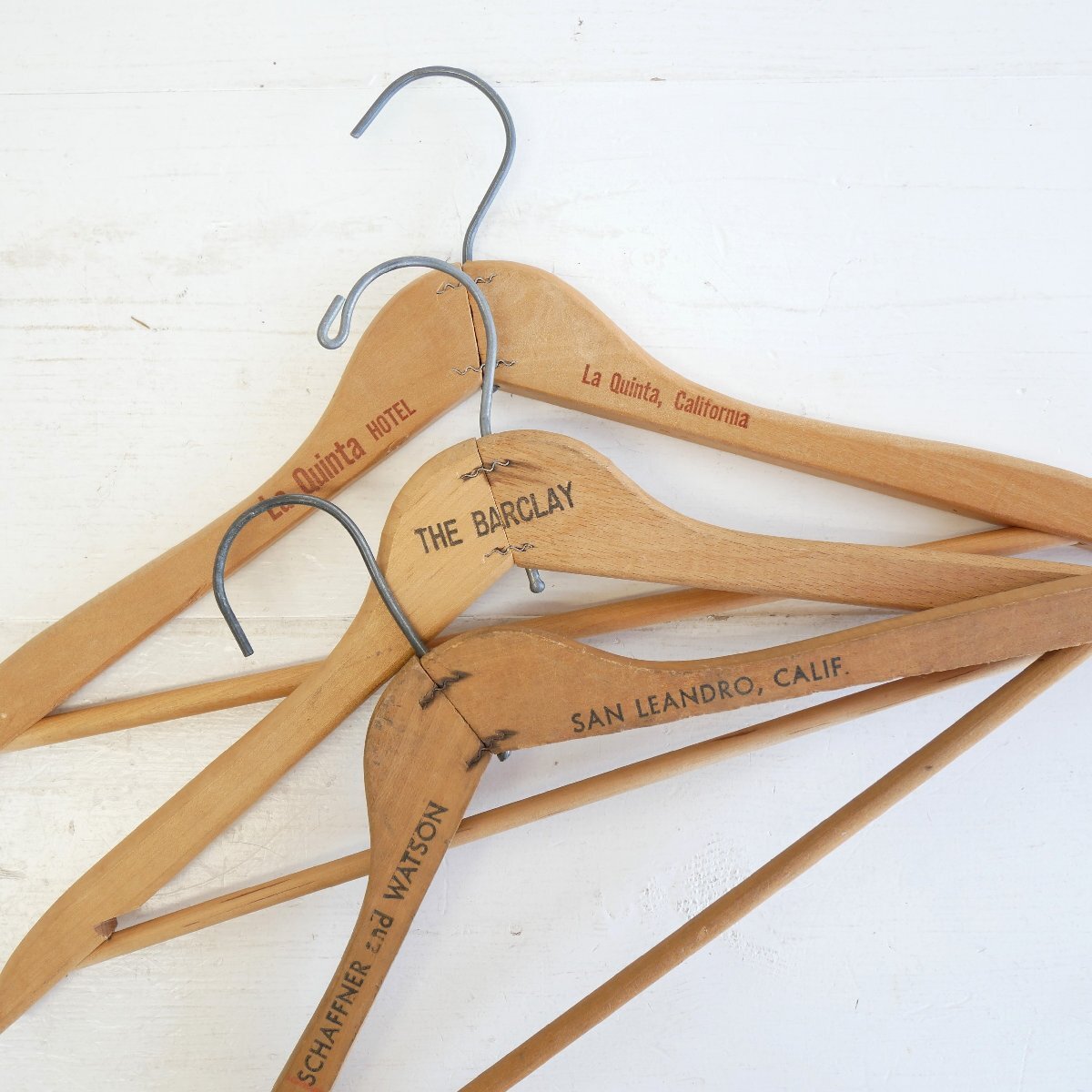 > ヴィンテージ 木製ハンガー 3本セット / アメリカ カリフォルニア州 ホテル アパレル店 店舗什器 ディスプレイ小物 #702-6-192-493
